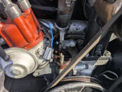 ということで、ボンネットを開けて、デスビキャップを開けてポイントあたりをチェックされています