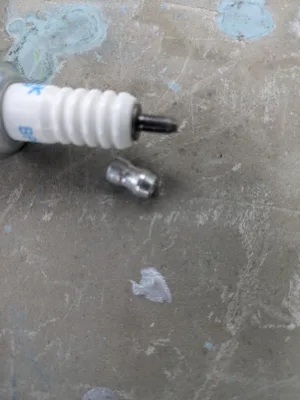 プライヤーで軽く挟んで回すと、なんと言うことでしょう、端子は簡単に外れ、見たことのあるねじ状態のプラグが現れました。