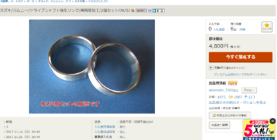 立て続けにヤフオク!で「JA11ジムニードライブシャフト強化リング 即決価格4800円送料無料」を